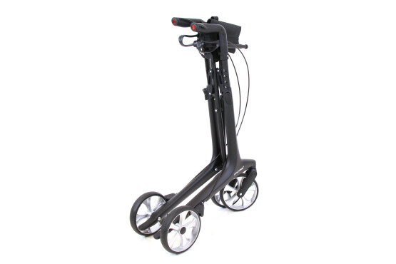 Denne ultralette rollator i carbon er designet til at gøre din hverdag lettere og mere fleksibel – både indendørs og udendørs!